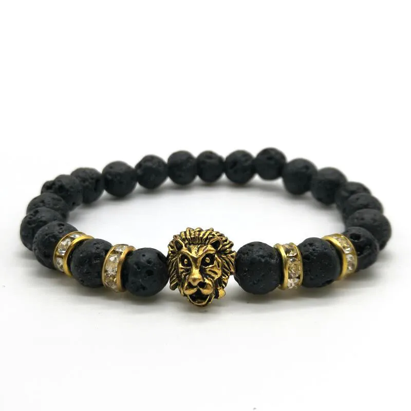 A gold-plated lion sits proudly in the center, framed by two studded rings of the same material for added sophistication.